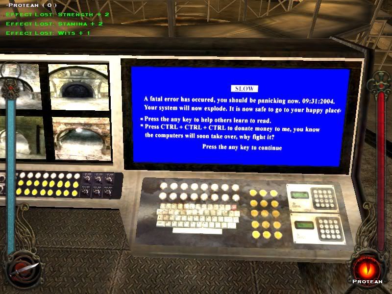 Fun game. Run into lots of supernaturals, including a werewolf and a Hengeyokai - which is more or less, an asian were-shark. Woo. Scary at times, too. Funny at other times, like this blue screen of death...