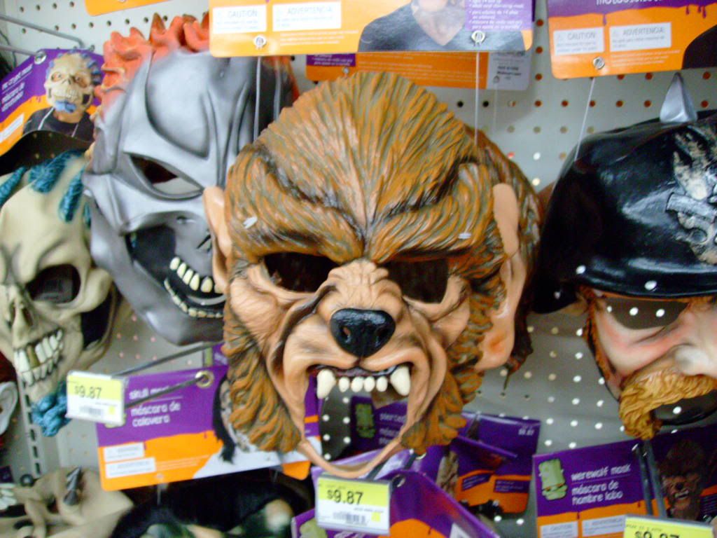 But its funny you should bring this up. Yesterday was my first Halloween store trip. Not much out yet but Im getting ideas. I want a werewolf one but all the masks are hideous or uncomfortable and if I just wear ears and a tail, everyone asks me if Im a cat...even if its grey ears and a shaggy tail. :P
